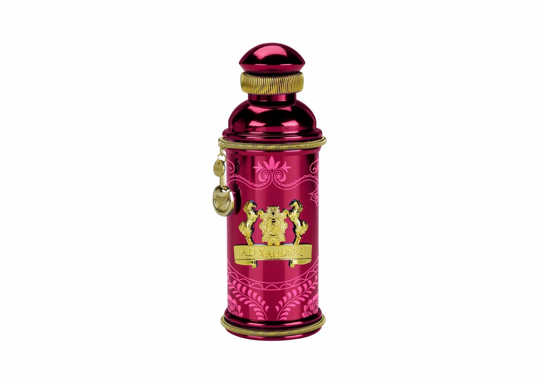 Le parfum se présente dans un précieux flacon de couleur rose métallique calligraphié de motifs artistiques. La boîte, de couleur rose est élégante et sophistiquée.