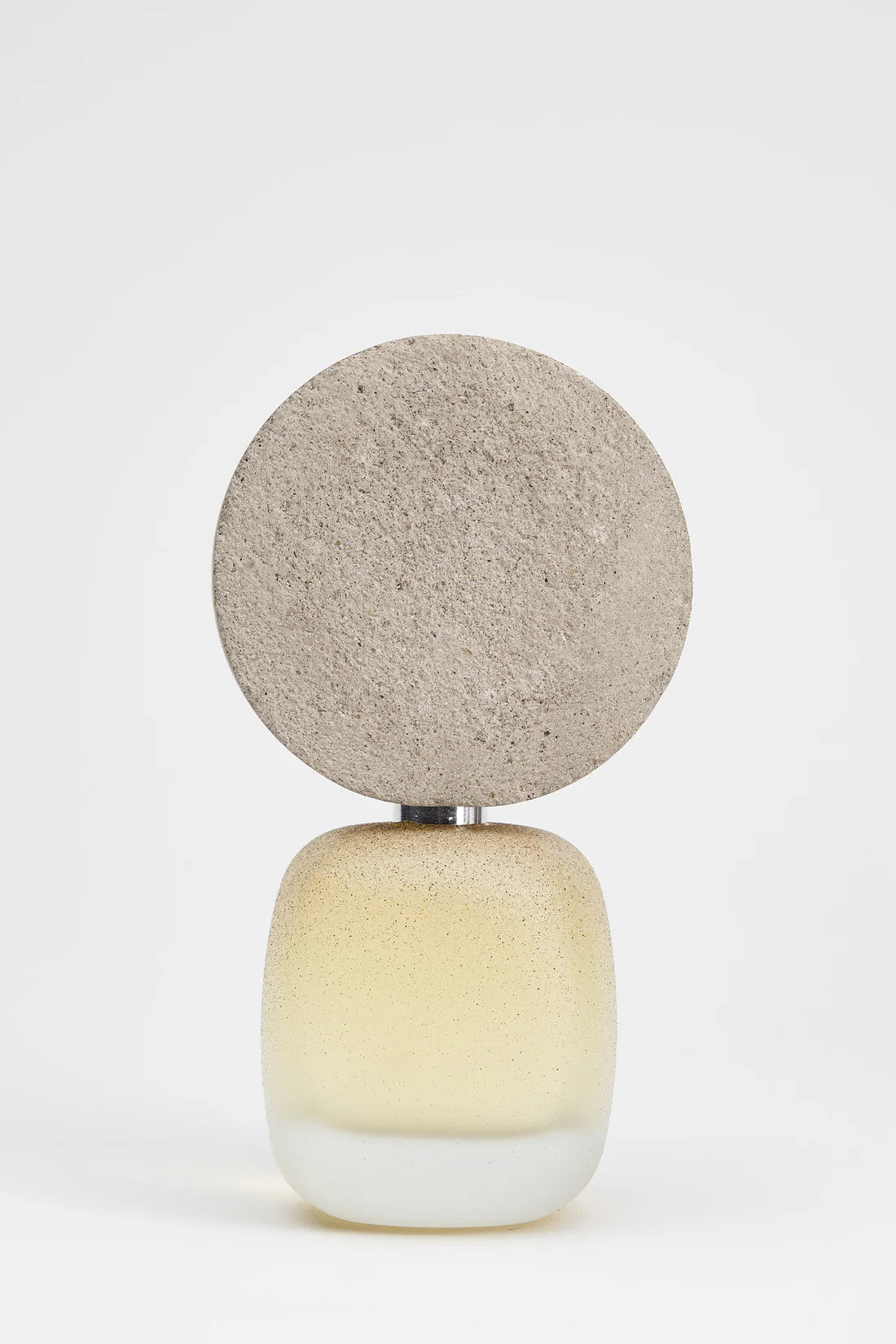 Le flacon et les quatre « ailes » qui s'ouvrent comme un « rituel » sont recouverts de sable et de poussière, rappelant les marches, le chemin et le lieu. Mais l'élément qui retient l'attention est le bouchon, qui imite les caractéristiques stylistiques de la pierre tombale roulée, telle qu'elle était construite autrefois.